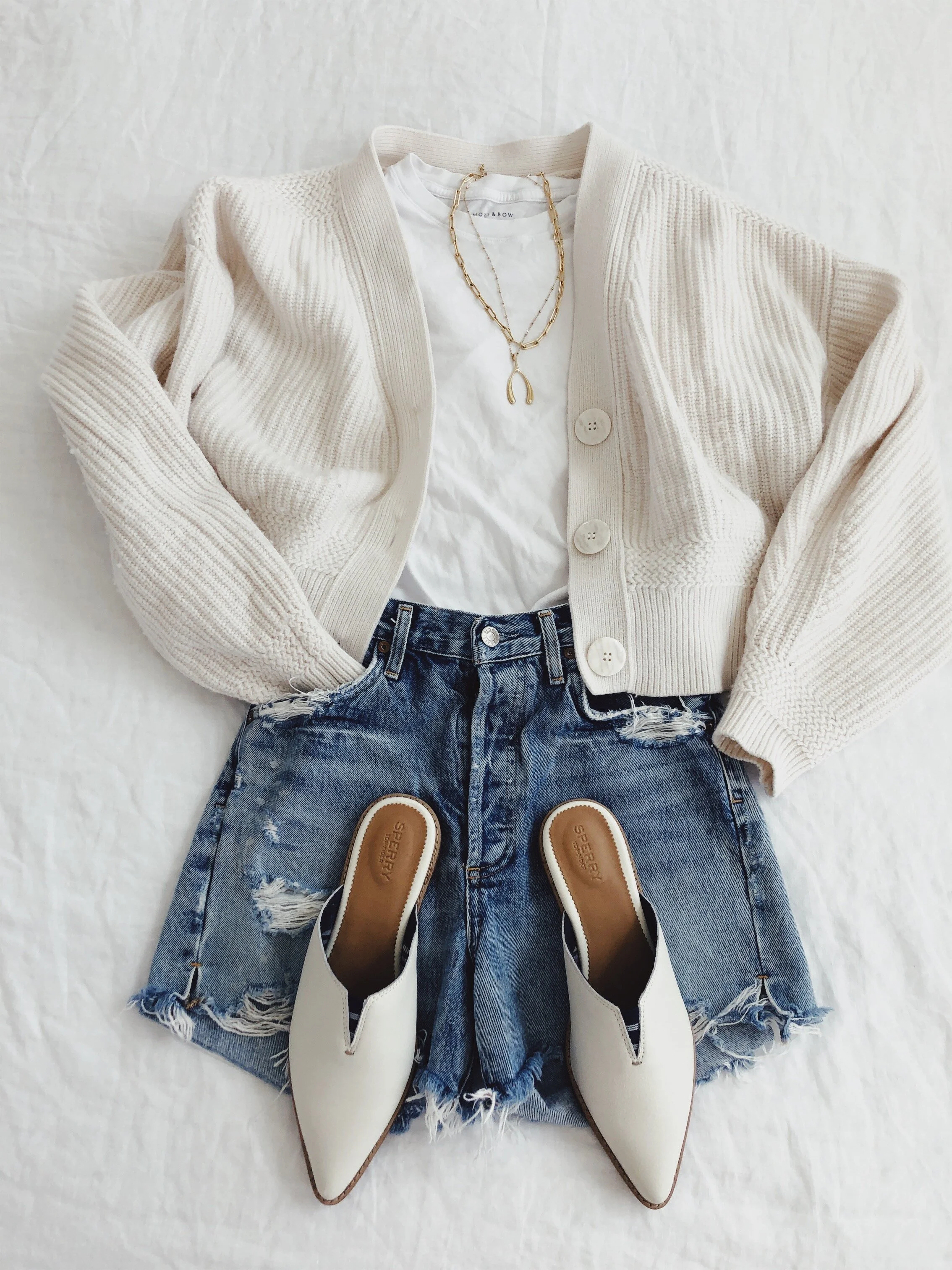 When you first think of a Summer wardrobe your mind doesnβt immediately think βsweaterβ but youβll use one more than you think! A great light cotton sweater is a closet essential for this season. Breezy nights, fighting off mosquitos, I love wearing this one with shorts or throwing it over my shoulders with a maxi dress. This sand colored one is also under $100 and would be great into Fall!